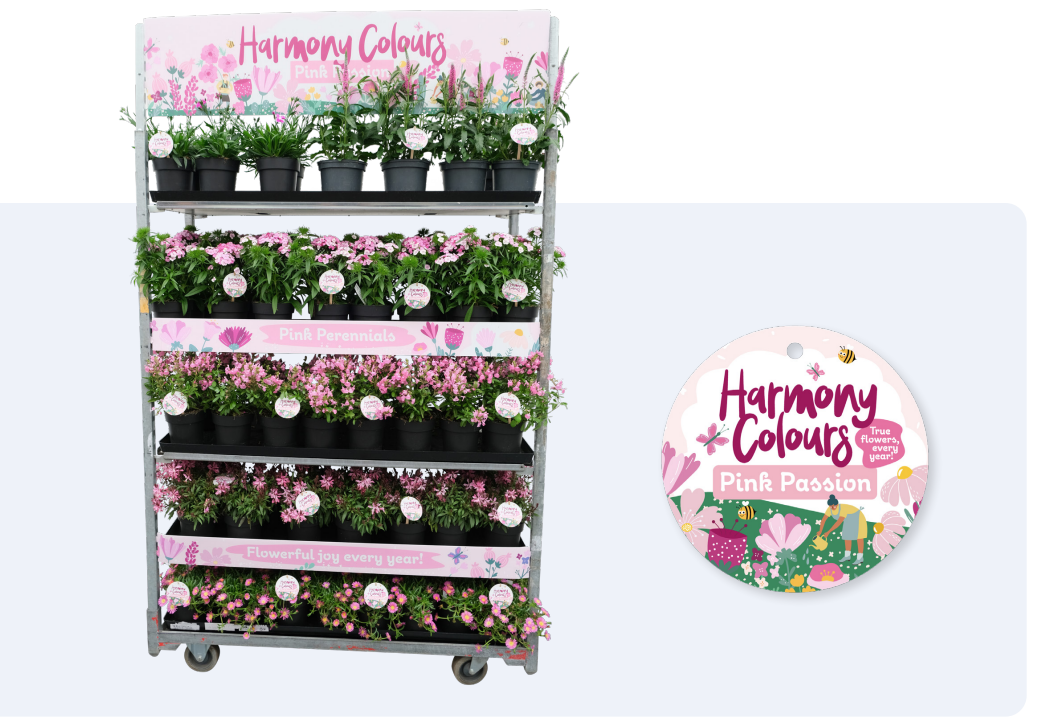 Pink Passion offers a vibrant mix of pink-flowering perennials, curated to create a bold and inviting trolley or table presentation. A perfect way to add warmth and charm to the retail floor, and to inspire consumers with ready-made colour combinations for their gardens.
